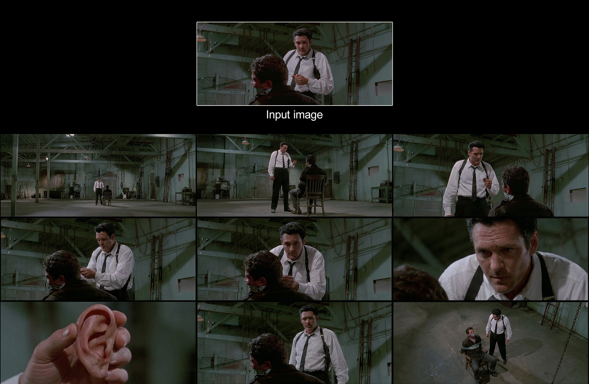 A cinematic contact sheet presenting multiple shot types of the same subject, all created from a single image.